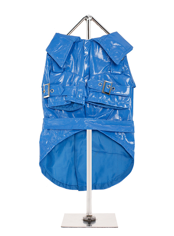 This iconic high gloss trench coat is a key piece for any winter wardrobe and represents an exciting twist on this classic wardrobe staple. It is 100% waterproof with a leash hole to allow a harness to be worn underneath the coat. This sophisticated yet practical trench coat has a fully adjustable belt with a beautiful chrome buckle with matching buckle-fastened cuffs that can be tightened to keep out the cold and wet. The trench coat is synonymous with understated style, sophistication and elegance, perfect for your pup.