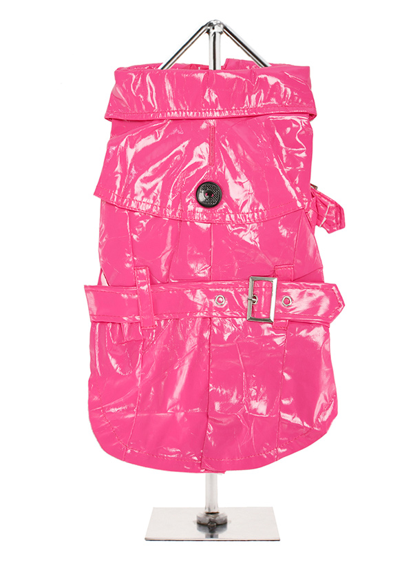 This iconic high gloss trench coat is a key piece for any winter wardrobe and represents an exciting twist on this classic wardrobe staple. It is 100% waterproof with a leash hole to allow a harness to be worn underneath the coat. This sophisticated yet practical trench coat has a fully adjustable belt with a beautiful chrome buckle with matching buckle-fastened cuffs that can be tightened to keep out the cold and wet. The trench coat is synonymous with understated style, sophistication and elegance, perfect for your pup.
