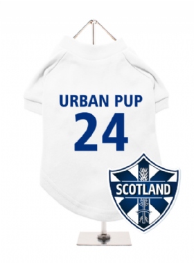 Celebrate Scotland with this personalised dog t-shirt, featuring a