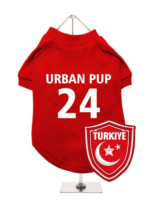 Support Türkiye with this personalised dog t-shirt, featuring a unique Türkiye crest with a crescent moon. You can add your dog's name and team number for a custom touch. Made from soft and cosy fabric, it ensures your dogs comfort. It's simple to clean, being machine washable. Perfect for flaunting your dog's Turkish pride, it's great for any occasion.