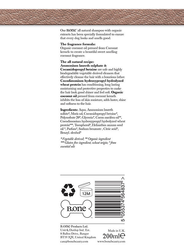 Our all natural coconut shampoo nourishes a dry or dull coat leaving behind a soft coat which is conditioned, shiny and exploding with aromas. Pressed from coconut kernels, the rich organic coconut oil inhibits loss of moisture for healthy skin and smooth hair. Contains wheat protein which has conditioning, moisturising and protective properties to make the hair look shinier and feel softer. This shampoo moisturises, cleans and detangles leaving coats healthy and silky smooth with the beautiful, rich aroma. B.smooth.